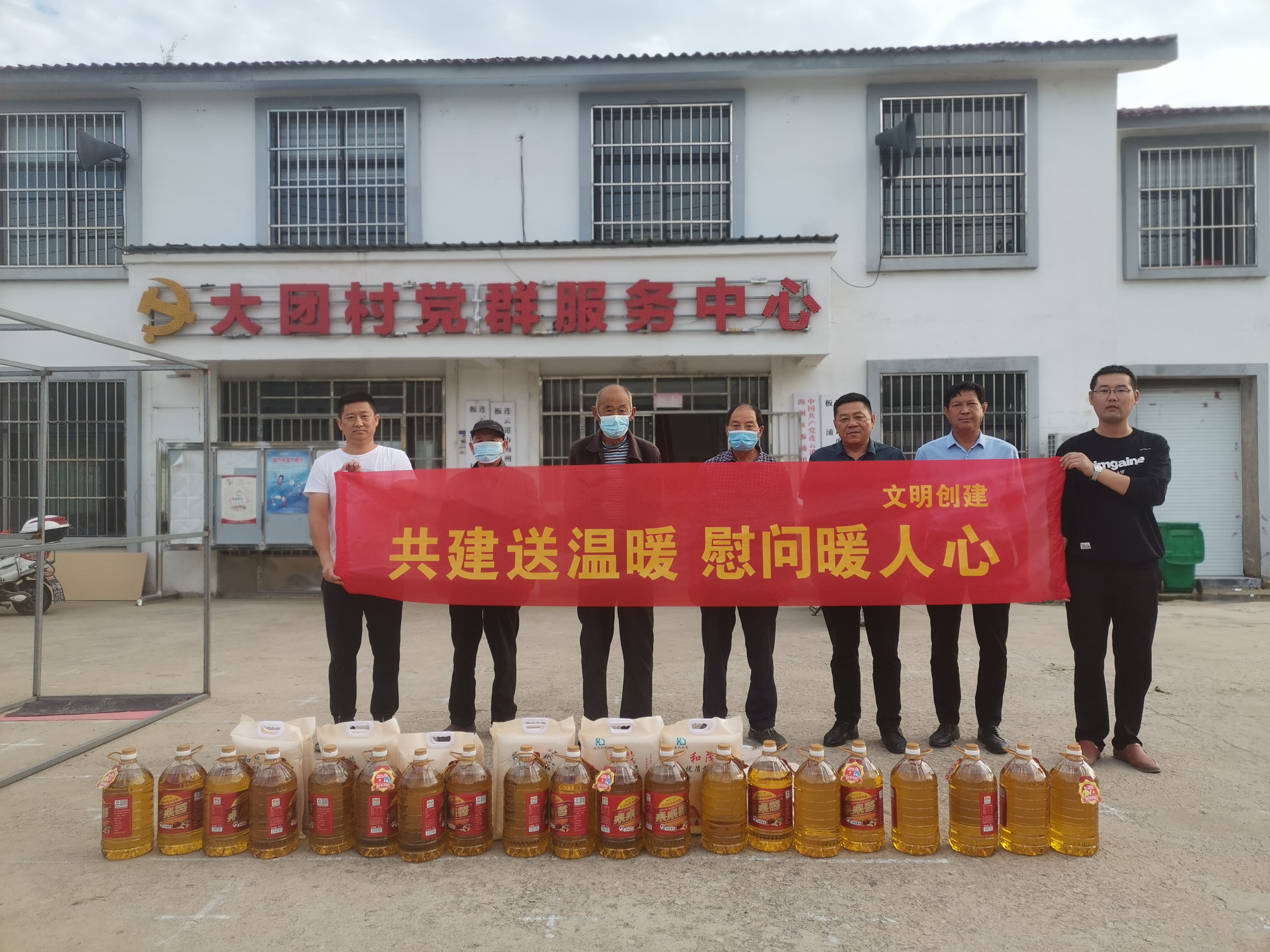 为充分发挥省级文明单位示范带动作用,推进城乡文明一体发展,为构筑道德风尚建设高地、建设社会文明程度高的新江苏作出积极贡献,在中秋佳节即将到来之际,为加强对结对共建村困难群众的关怀,9月8日,全福出租公司到结对共建村板浦镇大团村开展中秋慰问活动,为困难群众们送上油和大米等生活必需品。