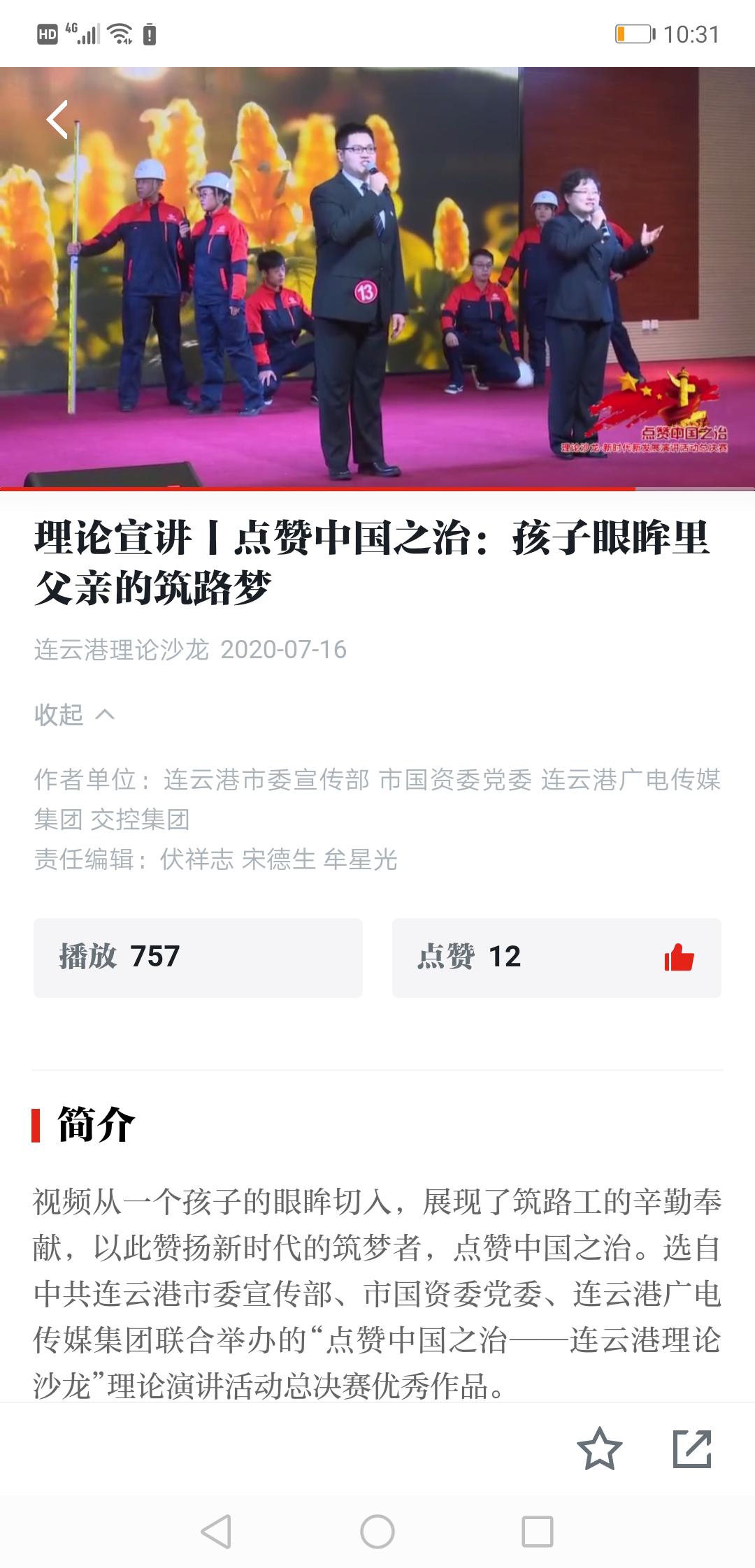 2020年7月16日起,《学习强国》江苏学习平台连续多日播放了由海建公司职工翟江虹、王首鉴等创作并演讲,由连云港市委宣传部、连云港市国资委党委、连云港广电传媒开云app最新版下载,开云(中国)联合录制的视频《孩子眼眸里父亲的筑路梦》。