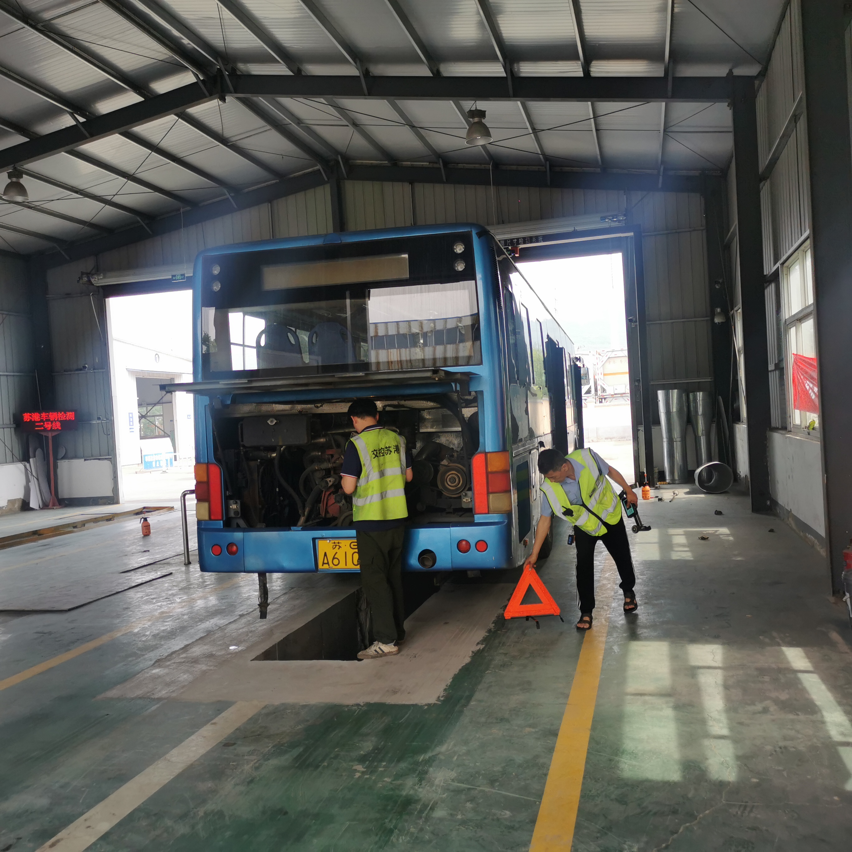 为迎接此次年审,海通公交提前成立了专项检查小组,针对在线运营的燃气车辆展开年审机务专项检查。检查重点包括:一是检查发动机、底盘、车身及其附属设备是否清洁、齐全、有效,漆面是否均匀美观,与初检情况是否一致;二是检验车辆的制动性、转向操作性、灯光、排气及其他安全性能是否符合“机动车安全运行技术条件”标准;三是检查车辆三角牌、灭火器是否齐全有效,行驶证、号牌、发动机号及车架号的档案登记与车况相是否符,车辆是否已办理审批及异动、变更手续等。对发现的问题,现场立即安排维修,确保每台车辆顺利通过审验。