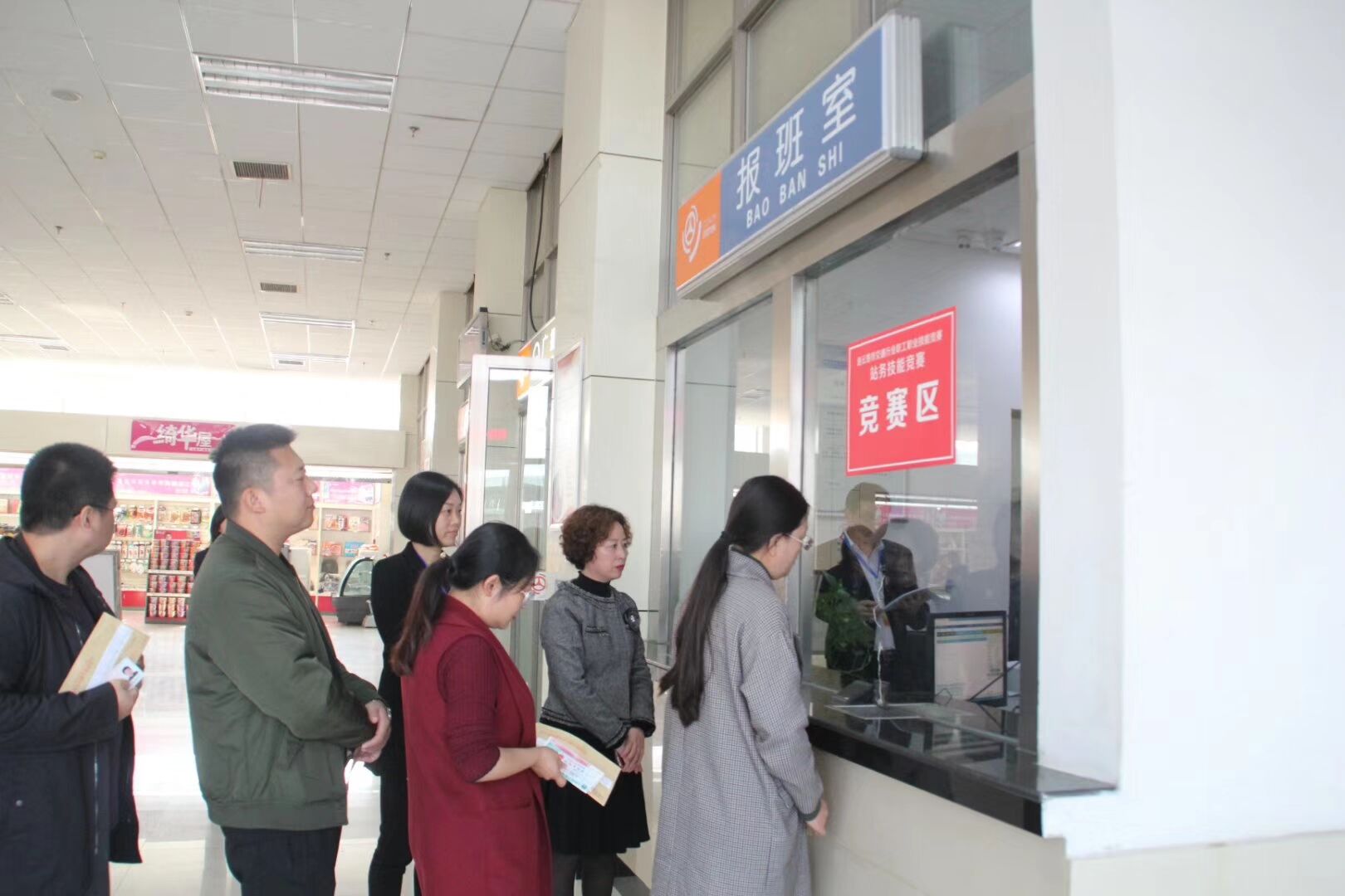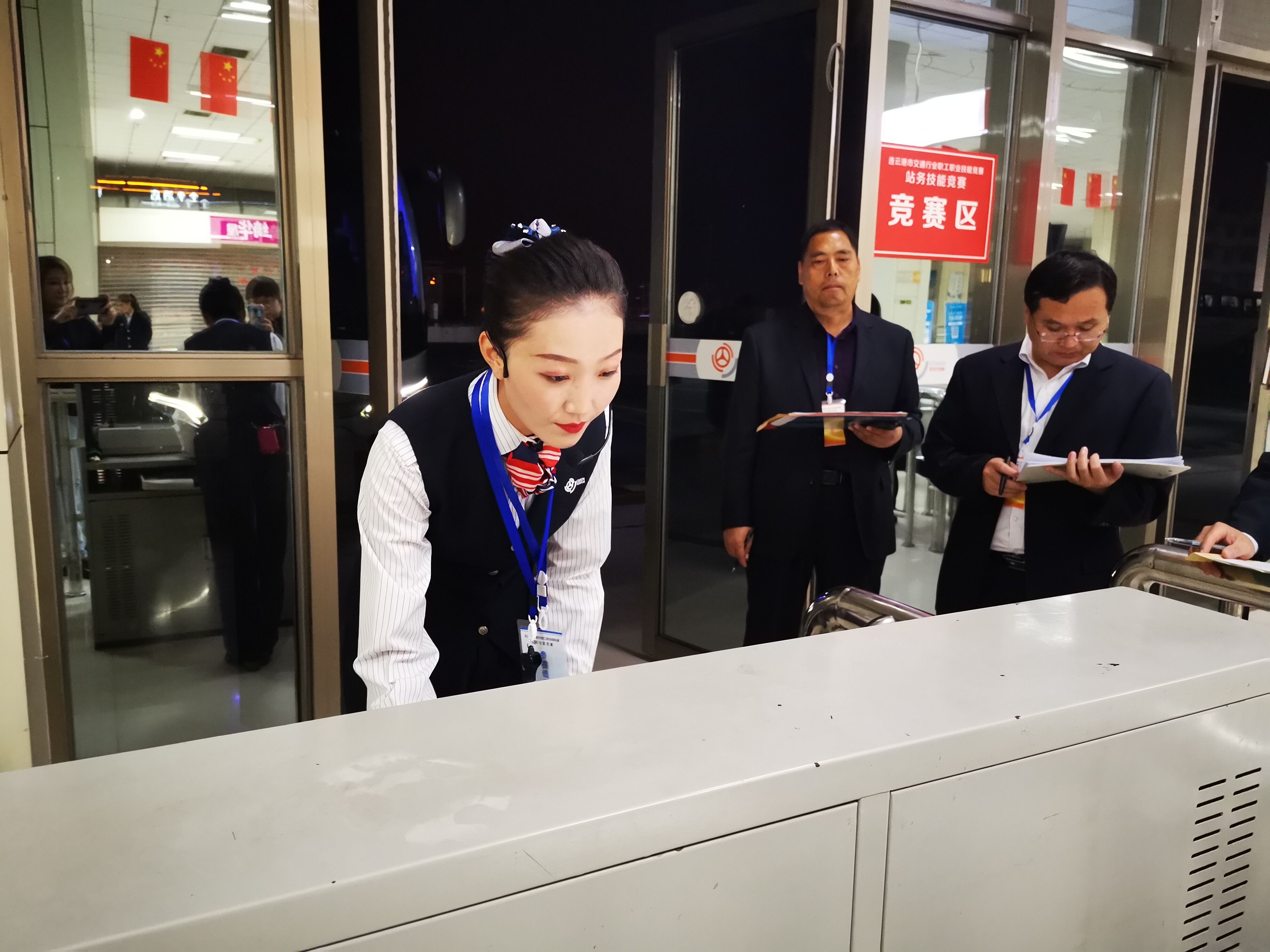 本次比赛分三个项目:站务技能理论考、售票考试、检票考试。比赛现场选手们端庄的仪表、专业的知识、响亮的哨声、亲切的安全喊话,不时获得评委和同事们的称赞。经过一天的激烈角逐,来自新浦总站的孙书语、李园园、曹姗姗分别获得一、二、三等奖。
