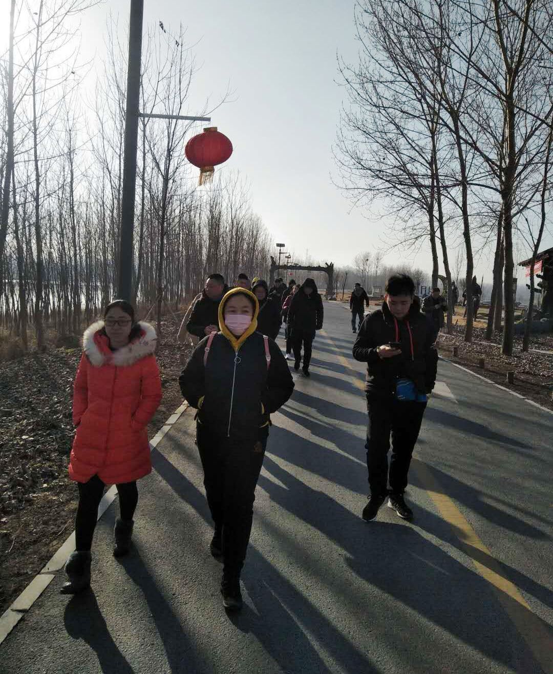 2019126日早上九点,大家准时到达出发点月牙岛西门。零下4摄氏度左右的天气,也丝毫阻挡不了职工们的热情。参加活动的职工在经理陈康的带领下向着目的地行进,整个行程约11公里。徒步途中,大家情绪饱满,河堤步道上,视野开阔,风景优美。队员们一边阔步向前,一边欣赏美景,一路欢声笑语,不一会就到达折返点。