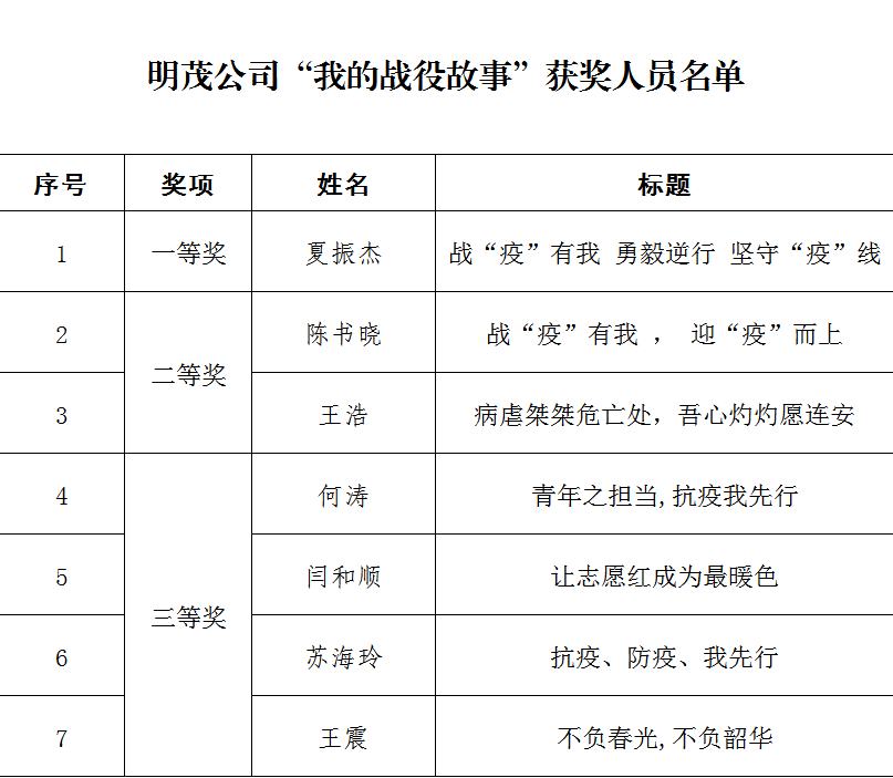 明茂公司“我的战役故事”征文评选揭晓