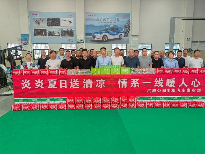 7月19日上午,汽服公司到出租汽车事业部为雷锋志愿服务车队的驾驶员送清凉,为奋战在高温下的驾驶员们送去了精心准备的纯净水、饮料、杯子、清凉油、安全锤等防暑降温和安全用品,用实际行动传递着对驾驶员的深切关怀。