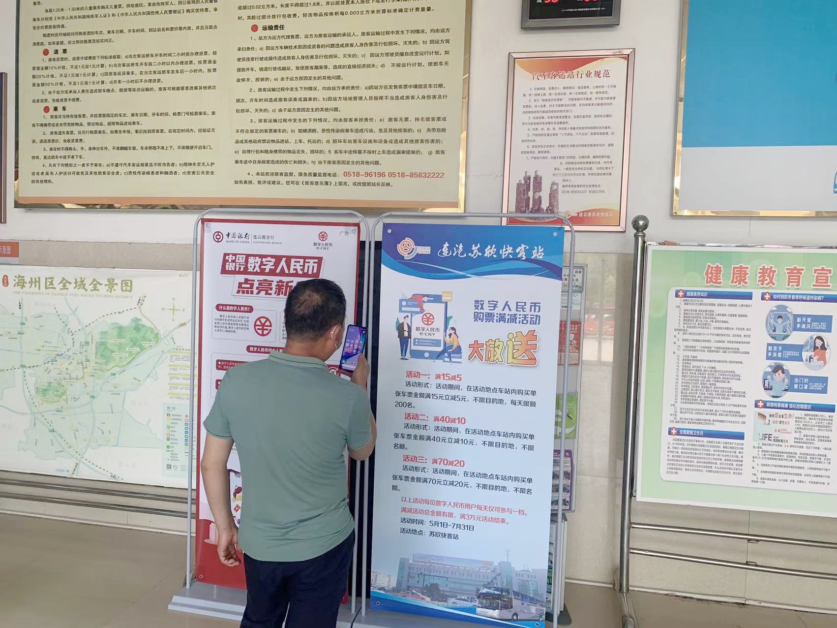 为进一步丰富数字人民币应用场景,给公众出行提供绿色普惠的支付选择,近日,汽车公司权属苏欣快客站、赣榆汽车站、东海汽车站、灌云汽车站在我市率先开通数字人民币购票功能,标志着数字人民币交通出行场景在连云港汽车客运站正式使用。